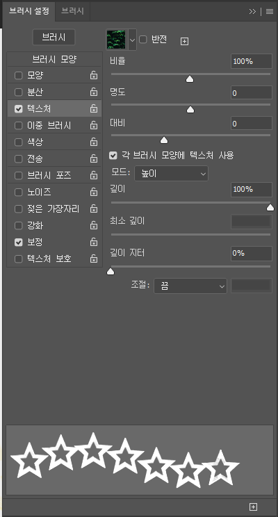 F5번 브러시 설정에서 브러시 모양 하단에 텍스처를 클릭해보세요